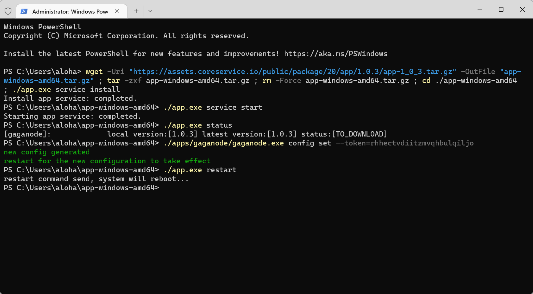 PS C:\Users\Administrator\app-windows-amd64> ./apps/gaganode/gaganode.exe config set --token=rhhectvdiitzmvqhbulqiljo